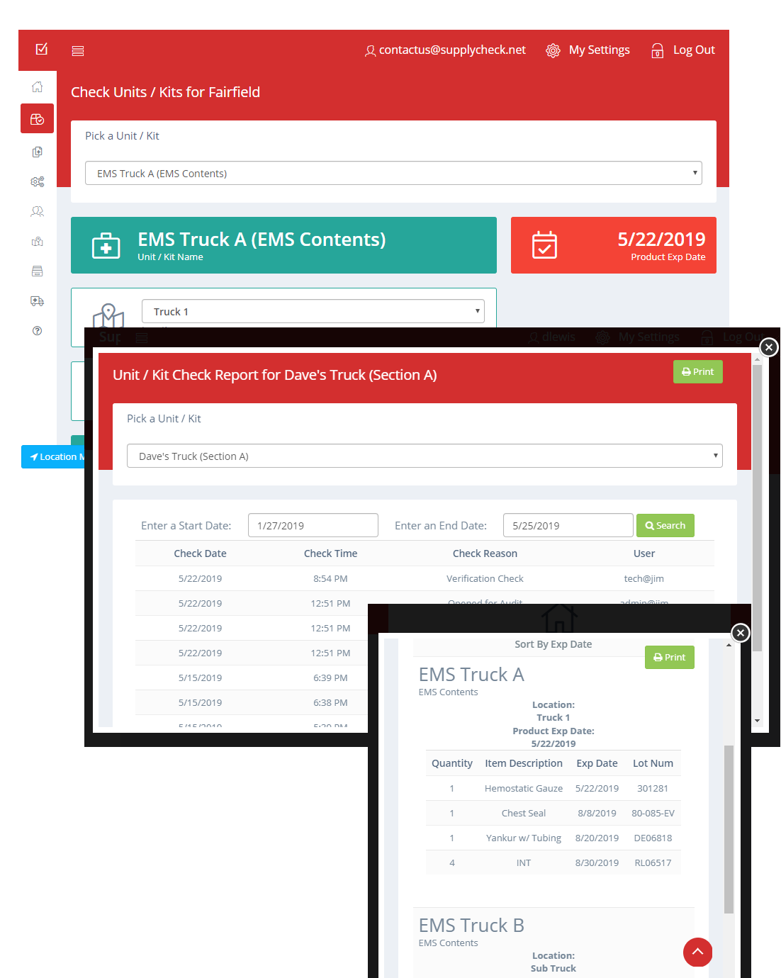 Nurse Check organizes all of your products within your fleet. We keep track of all trucks, med kits, and emergency boxes. Nurse Check's smart algorithms will track product locations within your fleet, all expiration dates, and lot numbers.